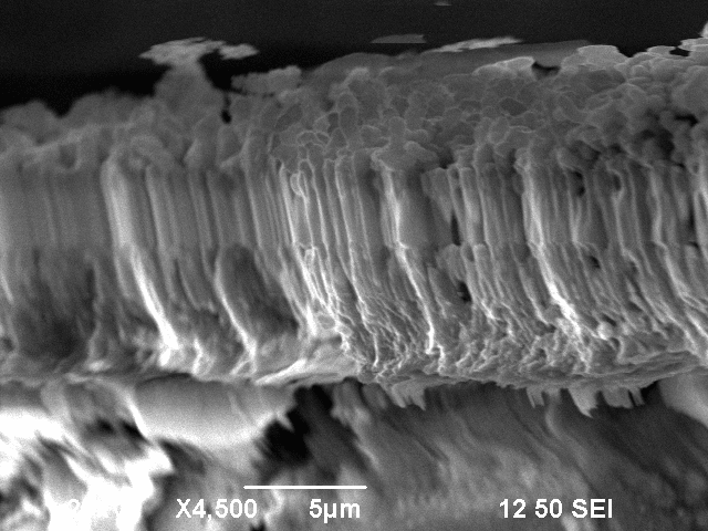 The smooth surface however had a very low ohmic resistance. This structure appears at the breaking lines. In the scanning electron microscope, it appears to be brighter than the bubble-like surface.