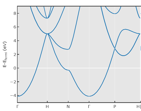 Lithium has three electrons. This bcc band structure animation shows that as the amplitude of the periodic potential increases, the lowest band splits off. The lowest band contains the two 1s electrons. The 2s electron fills half of the orange band.