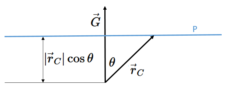 $$\vec{G}\cdot\vec{r}_C = C.$$This can be written as $|\vec{G}||\vec{r}_C|\cos\theta$ where $\theta$ is the angle between $|\vec{G}|$ and $|\vec{r}_C|$. If $|\vec{G}|$ is held constant, this can be interpreted graphically as saying that $|\vec{r}_C|\cos\theta$, the component of $\vec{r}_C$ in the direction of $\vec{G}$, is also constant.