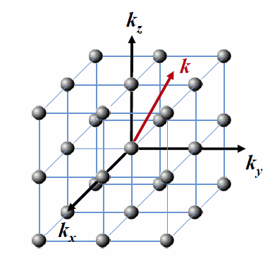The red vector is a $k$-vector in reciprocal space. The black points represent a reciprocal lattice.