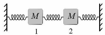 Consider two identical masses $M$ connected by two identical springs $C$ that are confined to move in one dimension.