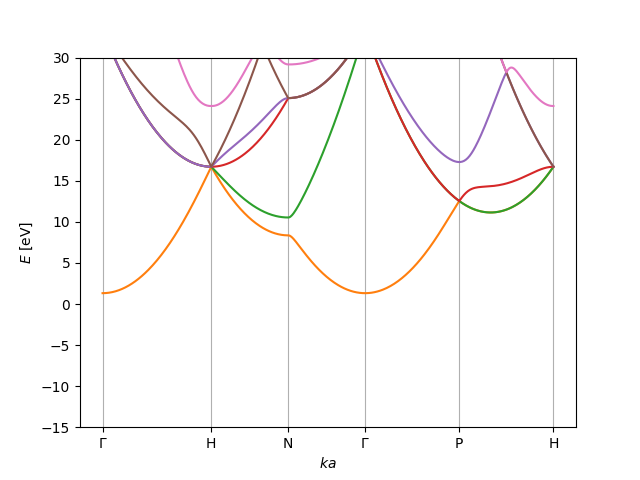 Lithium has three electrons. This bcc band structure animation shows that as the amplitude of the periodic potential increases, the lowest band splits off. The lowest band contains the two 1s electrons. The 2s electron fills half of the orange band.