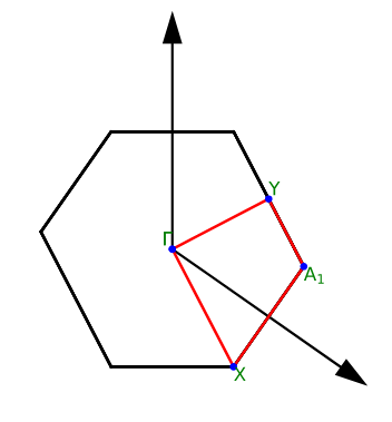 It will sometimes be important to specify which way waves are moving through a crystal. Waves with a certain wavelength may diffract when moving in one direction but not when moving in another direction. For every Bravais lattice, there are directions that are related by symmetry. For instance, for cubic crystals, waves that diffract in the $x$-direction will also diffract in the $y$- and $z$-driections. The symmetric directions for the different Bravais lattices have been given names to make it easier to discuss waves travelling in different directions for different crystal structures. There are links below to rotatable drawings of the first Brillouin zones displaying the symmetry points.