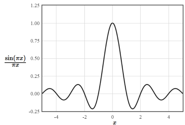 $$f_{n_1,n_2,n_3} = \frac{C}{4}\mathrm{sinc}\left(n_1 +n_2\right)\mathrm{sinc}\left((n_1 +n_3)/2\right)\mathrm{sinc}\left((n_2 +n_3)/4\right).$$Here $\mathrm{sinc}(x)= \frac{\sin(\pi x)}{\pi x}$ is called a sinc function and has the interesting property that it is zero for all integer values $x$ except for $x = 0$ where it is 1.
