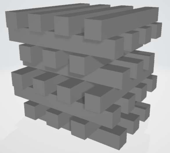 A woodpile consists of rectangular rods in the $x$-direction and rectangular rods in the $y$-direction stacked on top of each other.